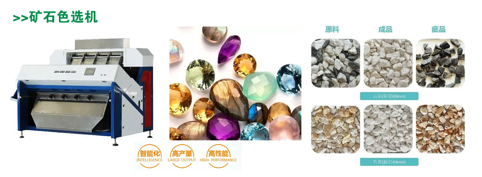寶石色選機可應于寶石、金剛石、石榴石、重晶石、石英石、冰晶石等等礦物的分選,采用彩色ccd圖像獲取系統(tǒng),實現(xiàn)物料紅、綠、藍三種顏色信息的獲取,具有人眼的感覺能 ,物料的選擇更真實。